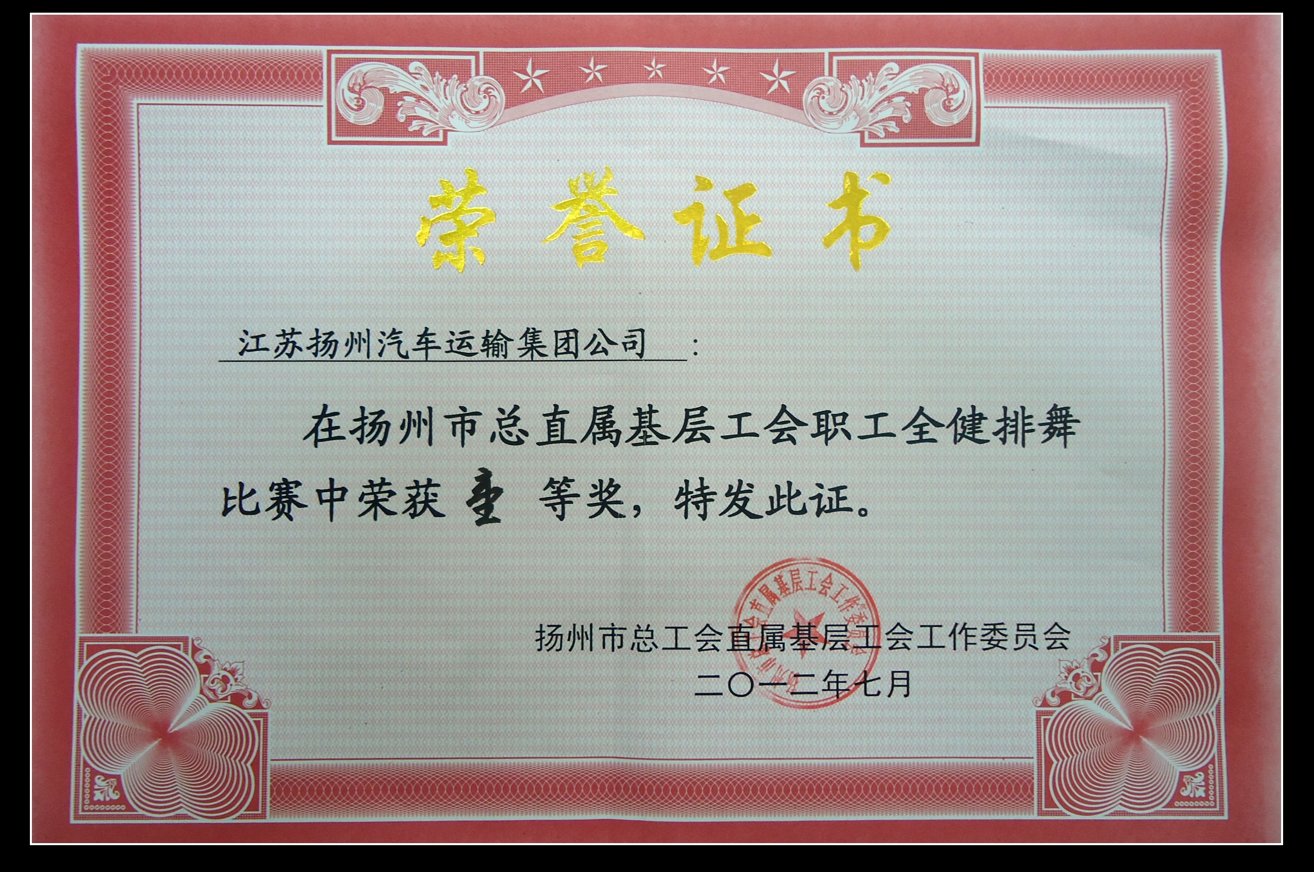 > 揚(yáng)州市總直屬基層工會職工全健排舞比賽一等獎