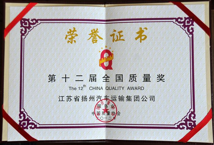 昨天上午,第十二屆全國追求卓越大會在北京京西賓館舉行。會上,集團(tuán)公司榮獲質(zhì)量經(jīng)營管理最高榮譽(yù)——“全國質(zhì)量獎”,全國僅6家單位獲此殊榮,也是全國交通客運(yùn)行業(yè)首家獲獎單位。全國政協(xié)副主席張榕明、交通運(yùn)輸部副部長高宏峰、中國質(zhì)量協(xié)會會長賈福興為我司頒獎。