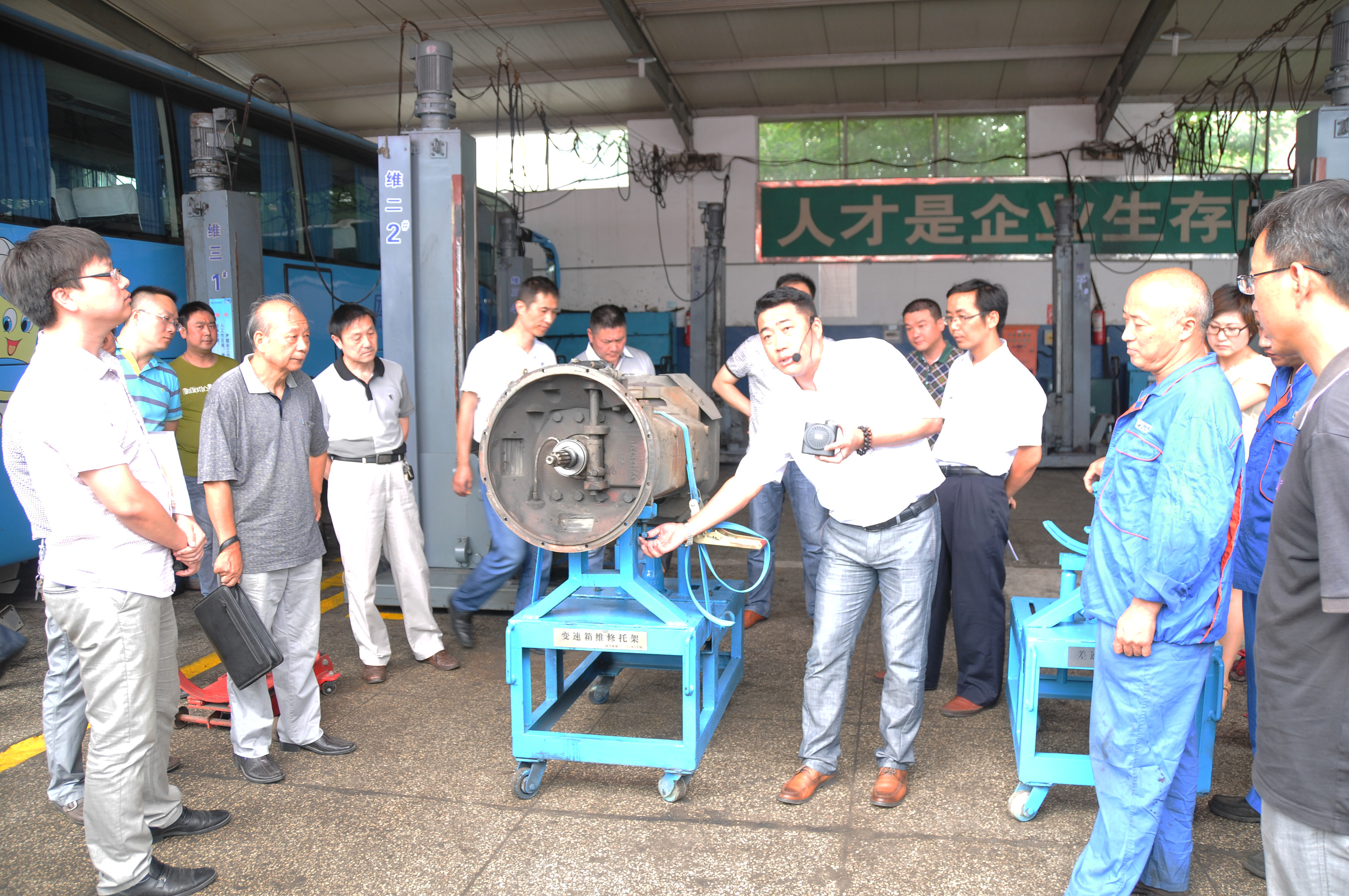 會議聽取了我司的“客車變速箱小車式托架”和鎮(zhèn)江江天集團(tuán)的“客車空濾除塵裝置”兩個QC成果的介紹,并進(jìn)行了現(xiàn)場觀摩。兩家公司精心準(zhǔn)備了ppt演示材料,對各自的成果從研制背景、技術(shù)參數(shù)、制作材料等進(jìn)行了多方位、深入、細(xì)致的講解,并現(xiàn)場演示了兩個成果的實際操作流程。參會人員對兩個來自生產(chǎn)第一線員工創(chuàng)造的成果表示了極大興趣,大家紛紛拿出相機(jī),記錄下每個細(xì)節(jié)。在互動過程中,對成果具體操作進(jìn)行了答疑,并對一些技術(shù)標(biāo)準(zhǔn)、行業(yè)規(guī)范的理解進(jìn)行了討論。大家認(rèn)為這兩個成果既解決了所在單位的實際問題,又具有推廣價值。