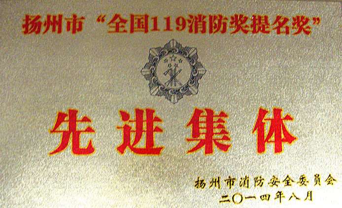 我司榮獲揚(yáng)州市首屆“全國119消防獎提名獎”