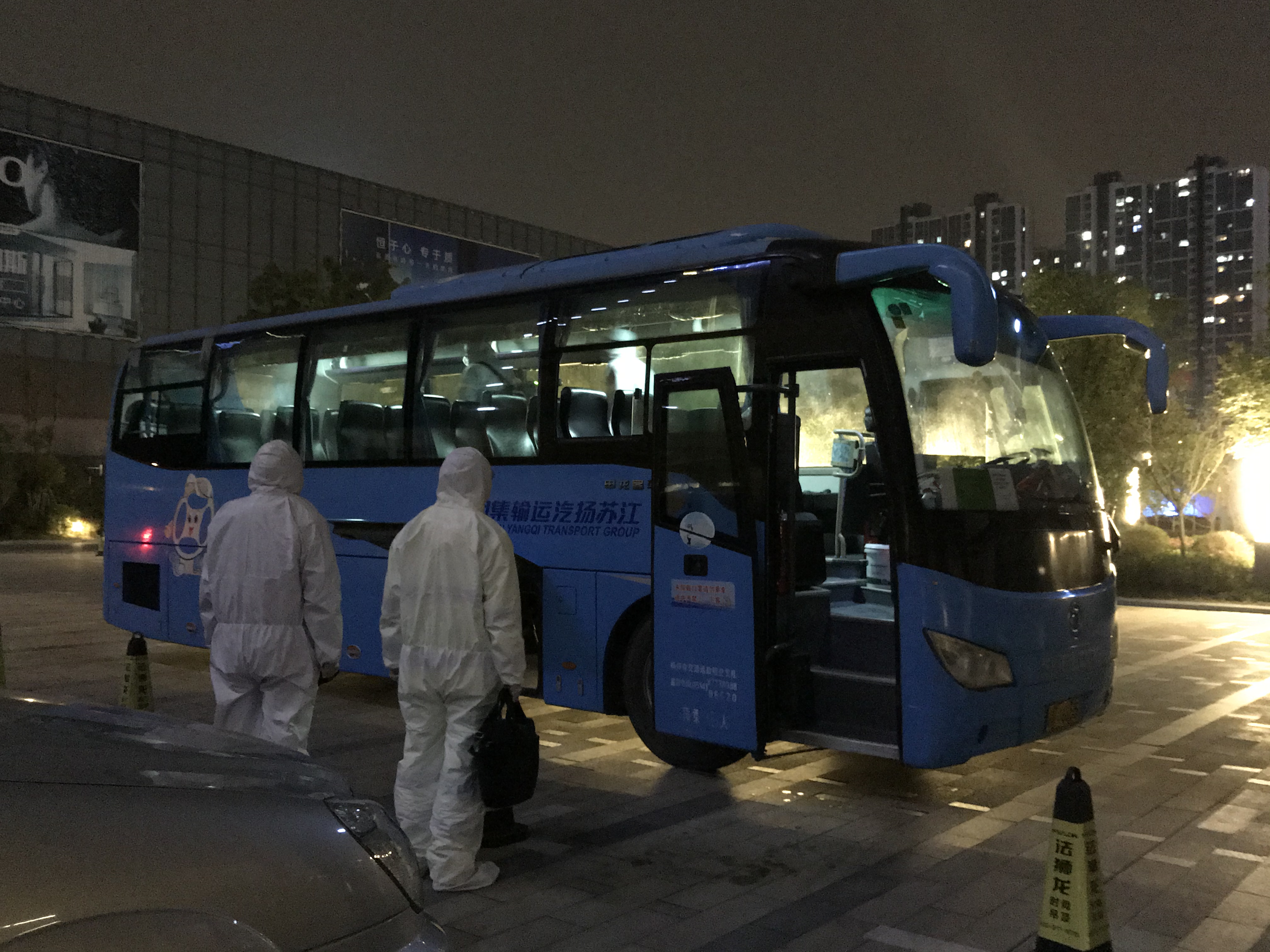 3月8日晚10時(shí)左右,一輛江蘇揚(yáng)汽集團(tuán)大巴緩緩駛?cè)肽尘频甏笤,首批境外返揚(yáng)轉(zhuǎn)運(yùn)人員安全抵達(dá)目的地。