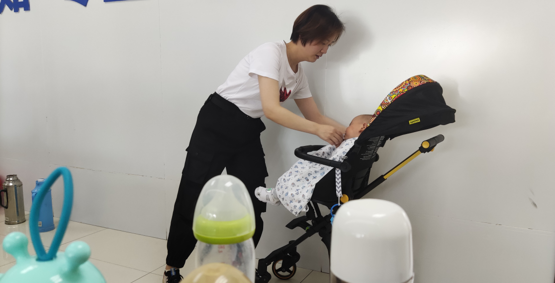此時(shí),一陣嬰兒的哭泣聲在人群中顯得格外特別,一位推著嬰兒車的年輕媽媽滿臉神情焦急,四處張望著。招生大廳內(nèi)工作人員朱玲看到后,第一時(shí)間走到她的身邊詢問(wèn)情況,原來(lái)這位母親今天是來(lái)參加培訓(xùn)的,本來(lái)一位朋友說(shuō)好前來(lái)陪同幫忙照看孩子,眼看培訓(xùn)時(shí)間就要到了,她的朋友還沒有來(lái),一時(shí)急的沒有辦法。朱玲了解情況后,主動(dòng)向孩子母親提出:“目前還在疫情防控期間,培訓(xùn)學(xué)員較多,帶孩子參加不太合適,放在我們這邊幫忙照看是比較妥善的辦法,我愿意幫忙照看孩子,您就安心參加培訓(xùn)吧。”