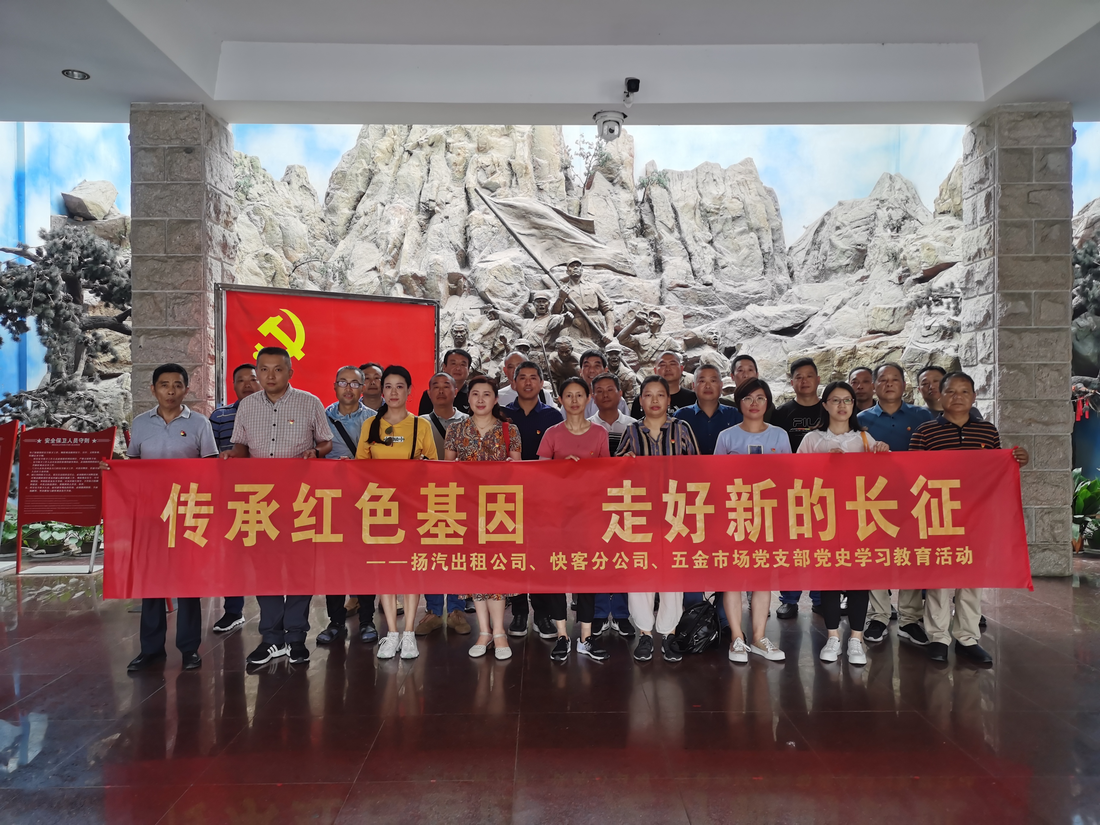 為豐富黨史學(xué)習(xí)教育形式,進(jìn)一步提升學(xué)習(xí)效果,7月16日,揚(yáng)汽出租、快客分公司、五金市場(chǎng)黨支部聯(lián)合組織20余名黨員赴鎮(zhèn)江茅山新四軍紀(jì)念館開展“傳承紅色基因 走好新的長(zhǎng)征”主題黨日活動(dòng)。