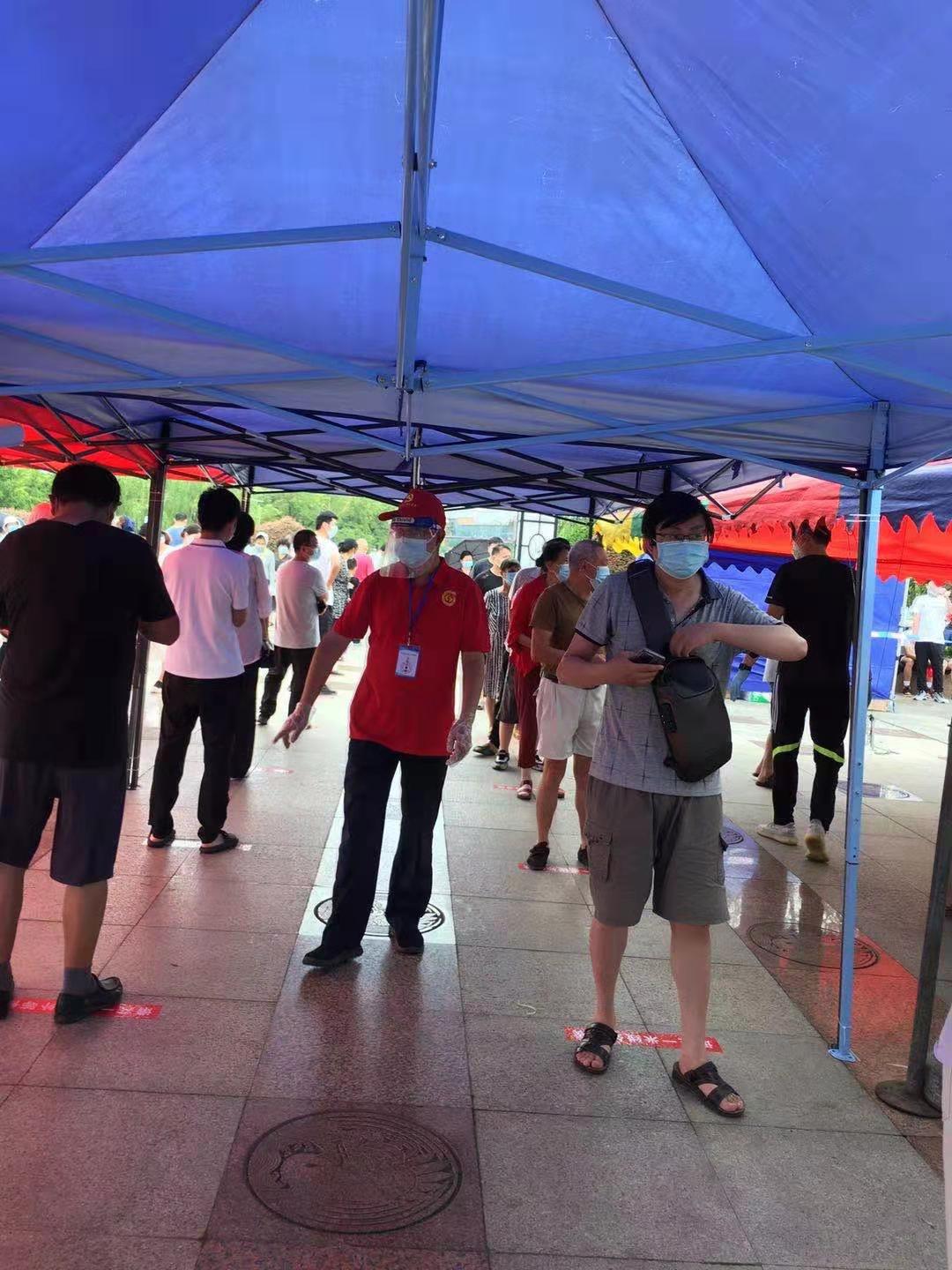 揚(yáng)州疫情爆發(fā),牽動(dòng)著每個(gè)人的心,黃建軍是揚(yáng)州站的值班站長(zhǎng),作為一名老黨員,主動(dòng)報(bào)名加入防疫阻擊戰(zhàn),于8月3日前往邗江區(qū)邗上街道進(jìn)行志愿服務(wù),深夜在臨時(shí)增加的來(lái)鶴臺(tái)廣場(chǎng)核酸檢測(cè)點(diǎn)貼地標(biāo),準(zhǔn)備各種用品,大、小垃圾桶等,協(xié)助社區(qū)做好準(zhǔn)備工作。第二天早上5點(diǎn),在五里社區(qū)來(lái)鶴臺(tái)廣場(chǎng)開(kāi)展第三次核酸檢測(cè)志愿服務(wù)工作,負(fù)責(zé)4千多戶(hù)居民的秩序維護(hù)。8月7日,他又前往邗上街道蘭莊社區(qū)望月苑核酸檢測(cè)點(diǎn)參加志愿服務(wù),用平凡的堅(jiān)守,打造戰(zhàn)“疫”路上的最強(qiáng)盾牌。