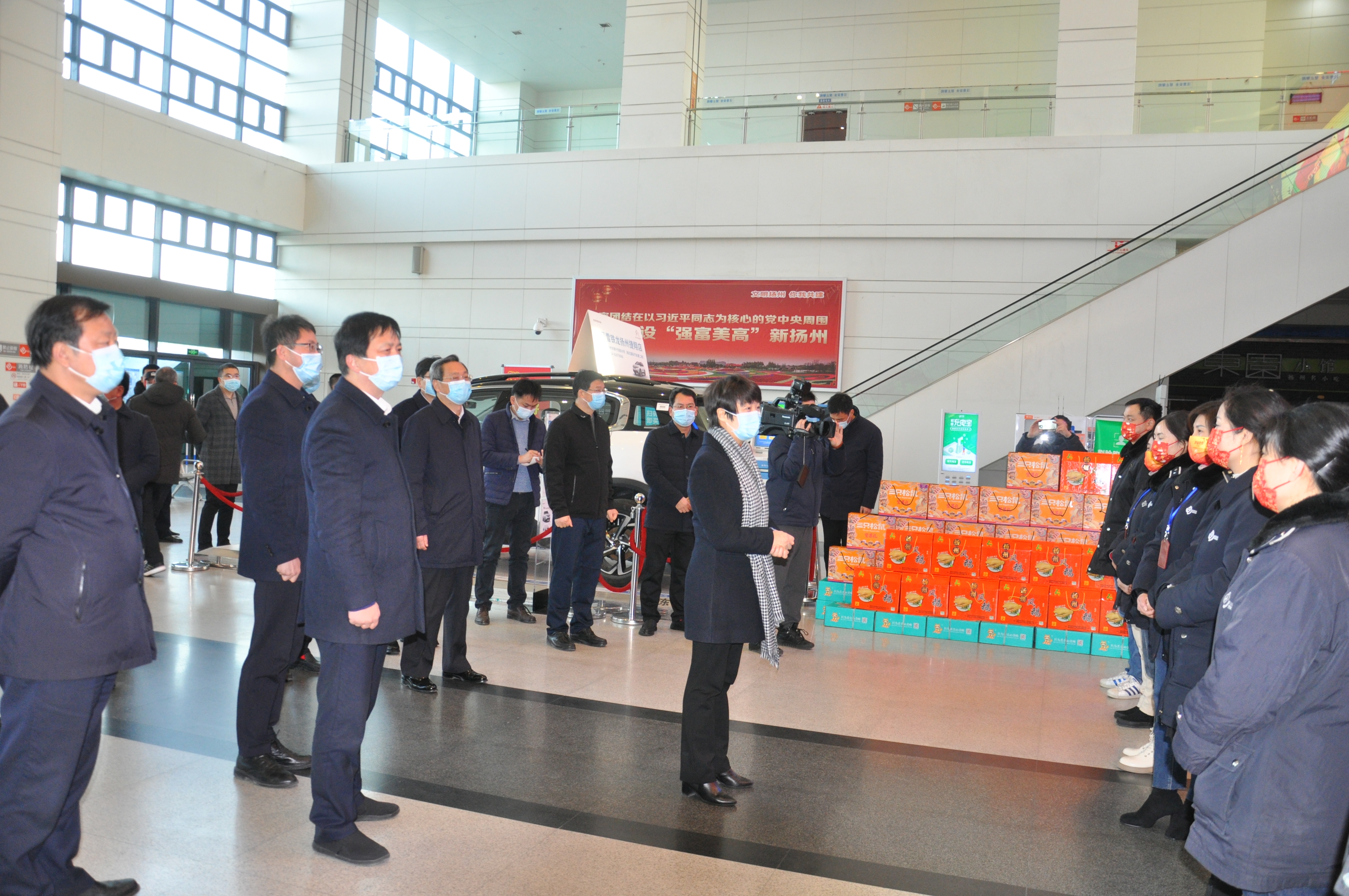 2月1日是大年初一,市委書記張寶娟一行來到西部客運(yùn)樞紐,檢查疫情防控工作,并看望慰問奮戰(zhàn)在一線的工作人員,代表市委、市政府向他們表示誠摯謝意并致以新春的美好祝福。市領(lǐng)導(dǎo)韓驊、張耀武,交通產(chǎn)業(yè)集團(tuán)黨委副書記、副董事長、總經(jīng)理方璇智,交通產(chǎn)業(yè)集團(tuán)副總經(jīng)理、揚(yáng)汽集團(tuán)黨委書記、董事長龔宇峰,揚(yáng)汽集團(tuán)總經(jīng)理談衛(wèi)國等及相關(guān)負(fù)責(zé)人陪同檢查。