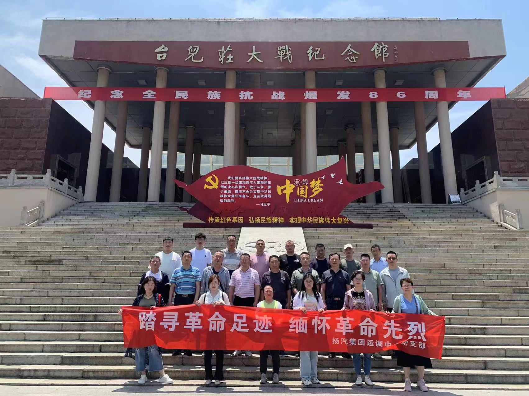 在慶祝建黨102周年暨紀(jì)念“七七事變”86周年之際,為緬懷革命先烈,繼承和發(fā)揚(yáng)黨的光榮傳統(tǒng)和優(yōu)良作風(fēng),7月7日,揚(yáng)汽集團(tuán)運(yùn)調(diào)中心黨支部開(kāi)展“踏尋革命足跡,緬懷革命先烈”紅色之旅主題黨日活動(dòng),組織全體在崗黨員、積極分子和部分優(yōu)秀員工前往臺(tái)兒莊大戰(zhàn)紀(jì)念館,實(shí)地接受愛(ài)國(guó)主義教育和革命傳統(tǒng)教育。