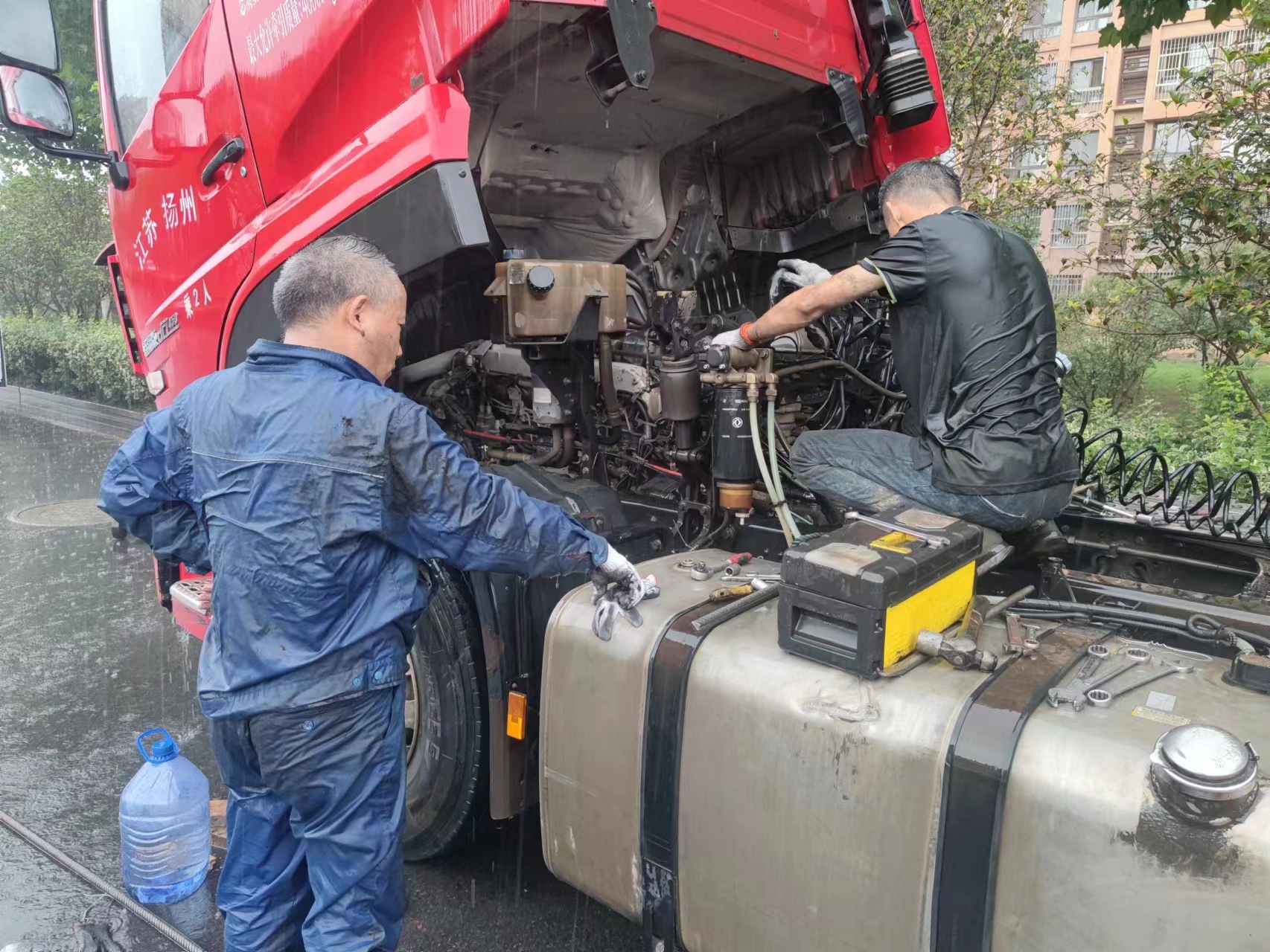 揚(yáng)汽修理廠不懼風(fēng)雨緊急搶修 全力保障車輛正常運(yùn)行