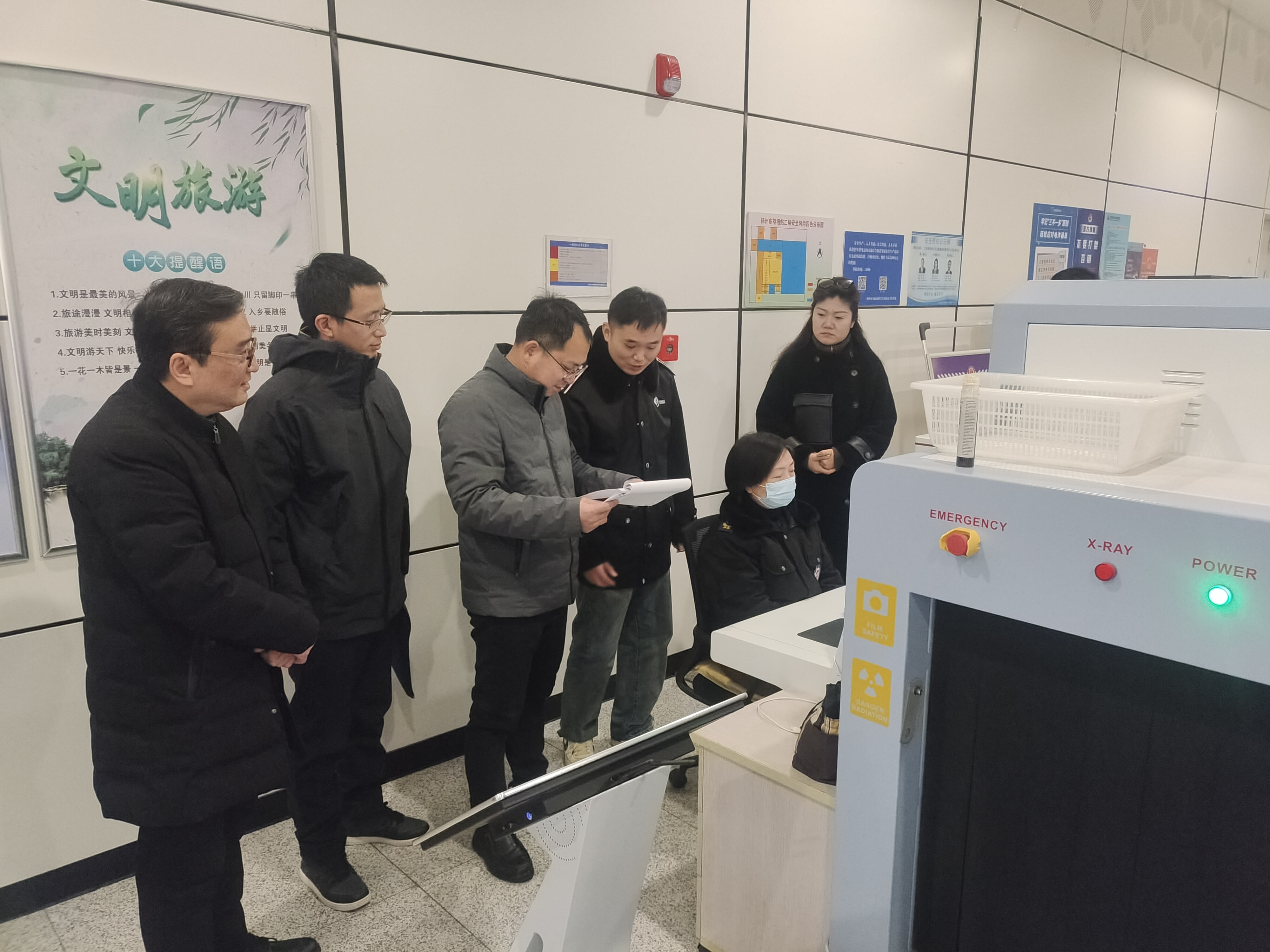 龔宇峰一行先后實地查看了售票、安檢、發(fā)車等重點區(qū)域,仔細翻閱了危險品查堵、消防點檢等臺賬記錄,詳細聽取了車站負責人關(guān)于春運期間客流研判、班次協(xié)調(diào)、安全防范、服務保障等工作匯報。
