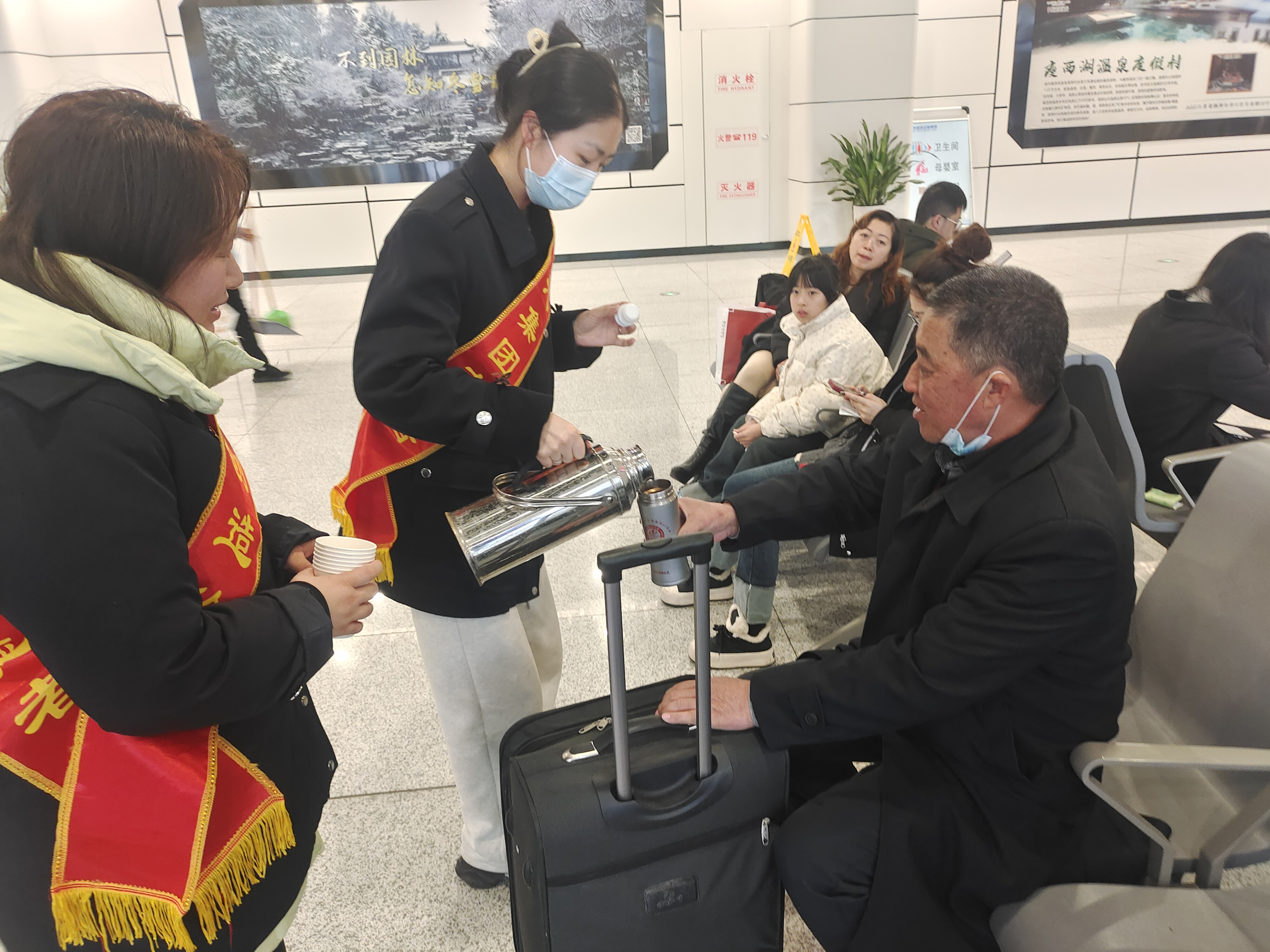 車站將愛心驛站臨時調整為旅客滯留休息區(qū),為旅客們提供了溫暖舒適的休息環(huán)境,工作人員積極與旅客溝通,為大家送上暖心的茶水,及時告知班次信息,解答旅客的疑問,努力緩解旅客們的焦慮情緒。同時,工作人員有序地組織旅客退票,耐心地解答旅客疑問,提供準確的信息和合理的建議。他們的專業(yè)和熱情,贏得了旅客們的一致稱贊。